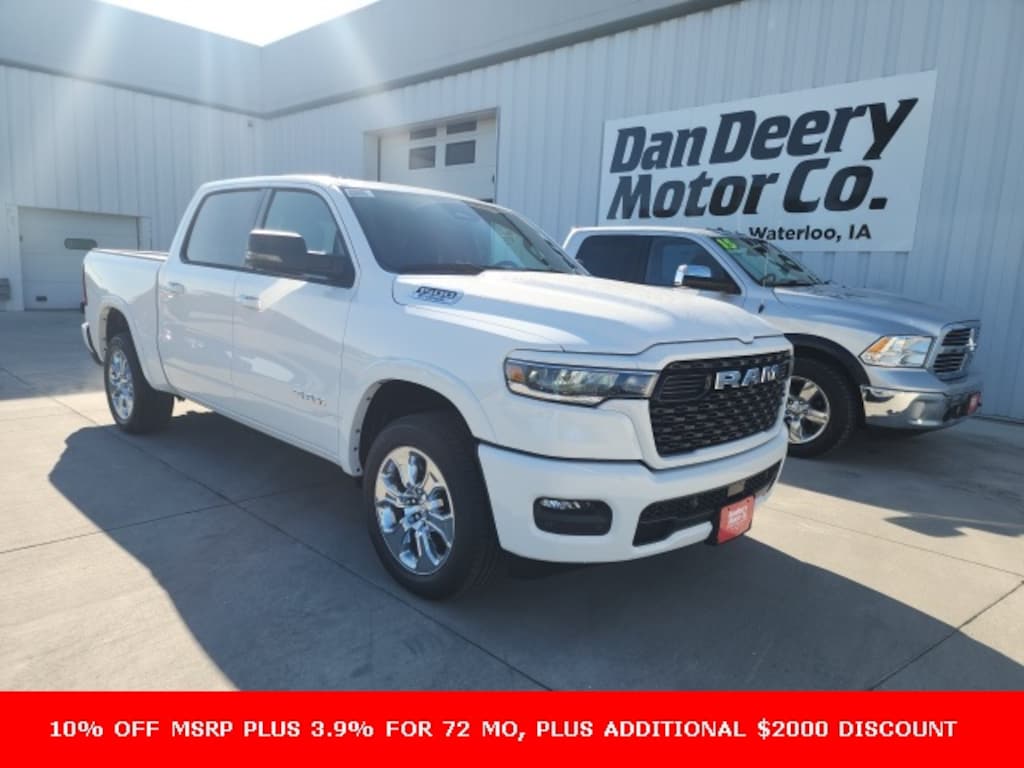 Bright White Clearcoat Ram 1500 4D Crew Cab Big Horn/Lone Star 3.6L V6 24V VVT 19/24 City/Highway MPG 8-Speed Automatic 4WD Price includes all applicable incentives, some customers may not qualify: $1250 - 2025 Midwest BC SFS Bonus Cash . Exp. 12/01/2025 $2000 - 2025 National Holiday Select Inventory Bonus Cash. Exp. 12/01/2025 $750 - 2025 Midwest BC Regional Bonus Cash. Exp. 12/01/2025 10% Msrp - 2025 National 10% Below MSRP . Exp. 12/01/2025 $1,000 Trade Assist Rebate, must have trade 2008 or newer, good through Dec. 31st 2025