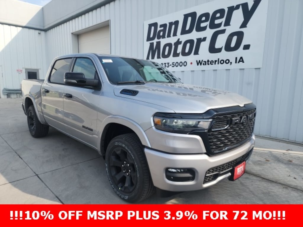 Billet Silver Metallic Clearcoat Ram 1500 4D Crew Cab Big Horn/Lone Star 3.6L V6 24V VVT 19/24 City/Highway MPG 8-Speed Automatic 4WD Price includes all applicable incentives, some customers may not qualify: $1250 - 2025 Midwest BC SFS Bonus Cash . Exp. 11/03/2025 $750 - 2025 Midwest BC Regional Bonus Cash. Exp. 11/03/2025 10% Msrp - 2025 National 10% Below MSRP . Exp. 11/03/2025 $1,000 Trade Assist Rebate, must have trade 2008 or newer, good through Dec. 31st 2025