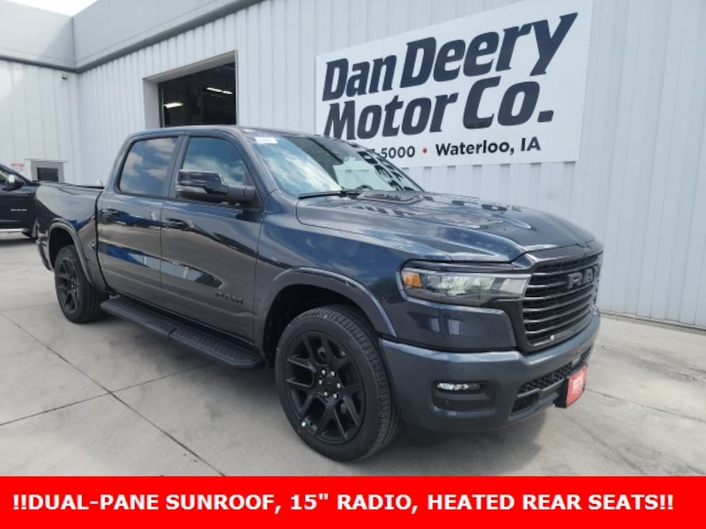 Forged Blue Metallic Ram 1500 4D Crew Cab Laramie 3.0L I6 17/24 City/Highway MPG 8-Speed Automatic 4WD Price includes all applicable incentives, some customers may not qualify: $3500 - 2026 National Retail Consumer Cash . Exp. 12/01/2025 $1,000 Trade Assist Rebate, must have trade 2008 or newer, good through Dec. 31st 2025