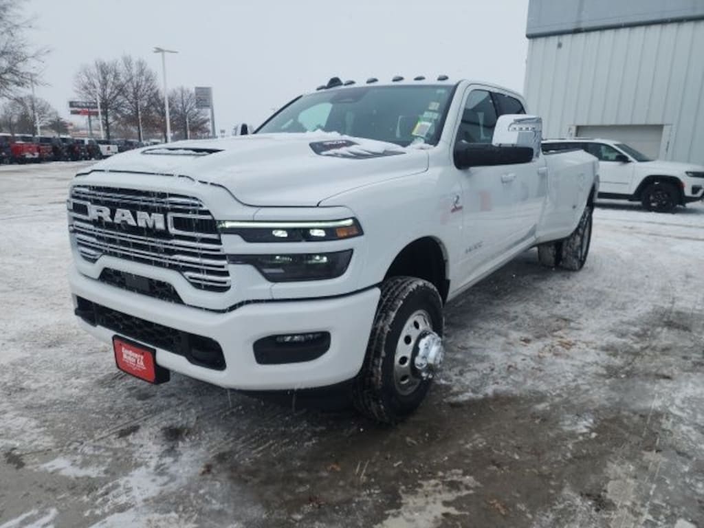 Bright White Clearcoat Ram 3500 4D Crew Cab Laramie 6.7L I6 8-Speed Automatic 4WD Price includes all applicable incentives, some customers may not qualify: $1000 - 2026 National Bonus Cash . Exp. 03/02/2026 $1,000 Trade Assist Rebate, must have trade 2010 or newer, good through Dec. 31st 2026