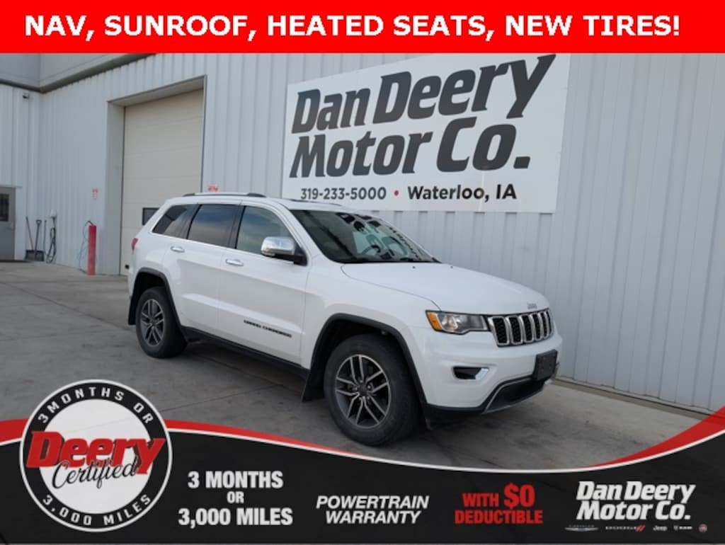 This Grand Cherokee was purchased here a few years ago and traded on a brand new Grand Cherokee! It's upgraded with the heated leather seats, sunroof, navigation, and we are putting on brand new tires!